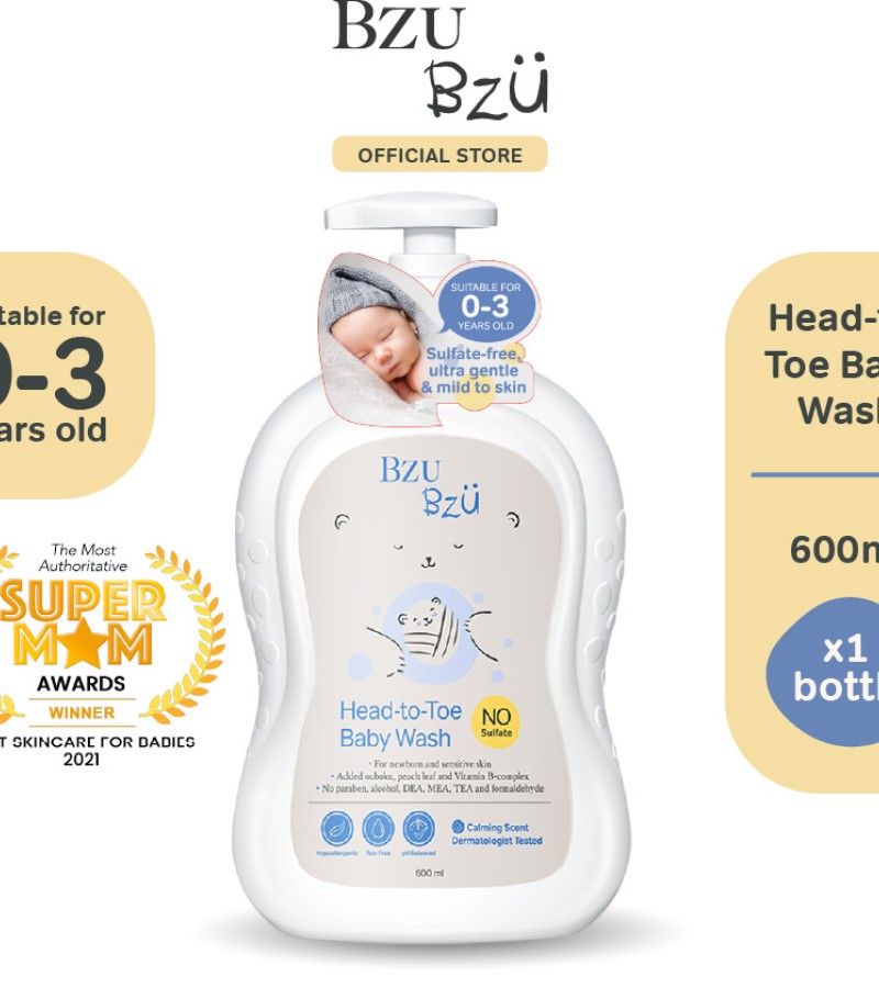 BzuBzu从头到脚婴儿洗发露,600ml |专为新生儿和敏感肌肤设计